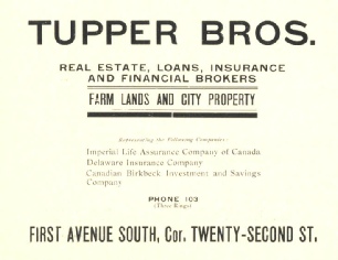 The family came to Saskatoon in 1911 and Loran joined his brothers George & Havelock in a real estate business.