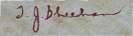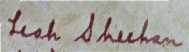 Timothy Joseph Sheehan was a dispatcher for Canadian National Railways living at 606 McPherson Ave, Saskatoon between 1915 and 1918. He was married to Leah (Leona) Page and they had three children, Edward Timothy (1906-1974), Rhea (b 1908) and Agnes (b 1914). Amongst their neighbours in McPherson Ave were the Baxter family living at number 612 who also signed the quilt. See Baxter Family.