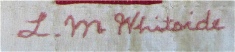 Although the name on the quilt was L M Whitside, it was felt that Lucy Mabel Whiteside may have been the signer. She was living about two hours away from Saskatoon on land near Birsay. Saskatoon was the largest nearby city so it is not unreasonable that the family may have come to Saskatoon from time to time. Whitside is a very rare name and no LM Whitside could be found anywhere, much less in the vicinity of Saskatoon. We have seen some evidence that names were not always signed by the bearer of the name and so possibly a transcriber may have incorrectly transferred the name to the quilt. Alternately, Lucy may have missed the e when she wrote her name. As she was signing cloth, it may have been next to impossible to correct the error or the embroiderer may have had trouble reading the exact spelling of the name when they embroidered over it.
