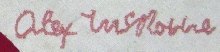 Alex and Myrtle had two children, Myra Lorraine (b 1921) and Calvin Alexander (1930-1997). Myra married John Colin (Jack) Bailey (1916-1995). Jack was the son of Ethel Jane Bailey née Curry (1883-1971) who may also have signed the quilt. See Ethel Jane.