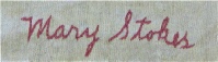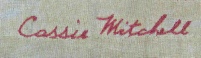 Although there is some doubt as to the identity of the woman who signed her name, Cassie Mitchell, the only candidate that could be found for the signature was Mary Catherine (Kate) Everson who was born on 13 July 1843 in Chippawa, Ontario and married William Mitchell (born in 1843, Ontario) on 20 September 1862 in Middlesex County, Ontario. Cassie was a common nickname for Catherine and two of Kate’s daughters signed the quilt. Her daughter, Kitty was living in Saskatoon and another daughter, Mary Eliza Mitchell (Stokes) was living in Winnipeg at quilt signing time. It was likely that Kate was also living in Winnipeg at that time as she died there on 6 May 1920. She could easily have been in Saskatoon for a visit, possibly with the Stokes family, and may have signed the quilt at that time.