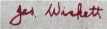 The name of James Wickett was signed immediately under the name of Pearl Stokes on the quilt and all of the Stokes family signed in the same area of the quilt. They were possibly in Saskatoon visiting Mary’s sister, Kitty and her husband Thomas Webb when they signed.