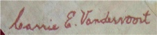 They were living in Brandon, Manitoba in 1906 and by 1911 had moved to Saskatoon, Saskatchewan. Mr and Mrs G A Vandervoort first appeared on the roll of 3rd Ave Methodist Church in Saskatoon in 1912. Mr and Mrs W A, Mollie and W Vandervoort first appeared on the roll in 1914. Mollie and W were removed in 1922 and others were removed in 1988 when the roll was cleared of past members not previously removed. Wilmot Sr died in Saskatoon on 16 July 1914 and was buried in Woodlawn Cemetery, Saskatoon. Carrie lived at 409 4th Ave N and at #205 Drinkle Building No 3, 115 3rd Ave S in 1916 and 1921 respectively. In 1930, she was found living in Olympia, Washington with her daughter, Helen, and grandson, Charles Sutherland. She died on 12 January 1946 in Vancouver, British Columbia and was buried in Woodlawn Cemetery next to Wilmot.