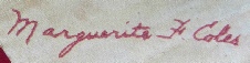 Maggie F Ann (Marguerite) Coles was born on 20 October 1895 in Saskatchewan to George Coles (b 1849) & Margaret Julia (Maggie) Dunlop (b 1857). Marguerite had four sisters, Ida May (b 1883), Mary J (b 1885), Lily Beatrice Alice (b 1888) & Harriet B (Hattie) (b 1893) and one brother, George Dalton (b 1900).
