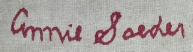 Before marriage, Annie was a secretary in the law office of John Milton. She married John George (Jack) Soeder on 1 July 1914 at the home of her mother in Saskatoon. Jack was born on 29 May 1885 in Ellice Township, Perth County, Ontario to Ernest Soeder (1847-1927) and Katherina Yundt (1851-1926). His siblings were: Margaret Catherine (1874-1910), Elizabeth (1875-1947), Emma (1877-1959), William (1878-1917), George John (b 1880), Lydia (1881-1957), Anna (Annie) (1883-1961), Christina Amelia (b 1890) and Carl Alfred (1892-1936).