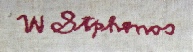 The name on the quilt looks like W Stphenos, but as it appears that an e was missed, we are presuming that the o was also an error that was, perhaps, hard to correct because the name was written on cloth. We could find no Stephenos surname, so are assuming the name was supposed to be Stephens. The only W Stephens listed in the 1918 Saskatoon Henderson Directory was Webster Stephens; thus he was the most likely signer. The surname in this tree was spelled different ways in different documents so perhaps Webster had a more limited education which may explain the varied spellings. A child, William Thomas Stephens, had an uncle, W O Springer, who was definitely a quilt signer. As W O Springer was living with his sister and her family in 1916 this child seemed a possible candidate. On the other hand, the names W O Springer and W Stephens were not signed close together on the quilt which sheds doubt that a relative signed the child's name. Related people often signed close together on the quilt. The only other candidate that could be found for this signature was William Tupper Stephens. He was not living in Saskatoon during the time that the quilt was signed, but according to census records and Saskatoon Henderson Directories, he lived in Saskatoon from 1911 to 1916 and returned in 1923. During the time of the 1921 census, he was in Prince Albert, Saskatchewan which is close enough to Saskatoon for visits to have been made. As he no doubt had strong ties to Saskatoon and may have had occasion visit Saskatoon while living in Prince Albert, his biography has also been included. If anyone has a document with the signature of Webster Stephens or William Tucker Stephens, it may help determine the identity of the signer. If the name belonged to the child, William, someone else must have put his name on the quilt as he was too young to write.