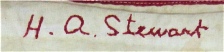 The signature assigned to John Lewis Stewart was not a strong match. It was difficult to even determine whether the initial was a J. There were some other J Stewarts living in Saskatoon in 1918 who could also have been the signer. As we are fairly certain that John's sister and brother did sign the quilt, our best guess was that John may also have signed.