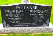 Ruby Ella (1915-1997). In 1916, the Faulkner family was living in Asquith, Saskatchewan and by 1921 had moved to 417 9th St East in Saskatoon. Adrian died on 6 February 1918 in Saskatoon having succumbed to pneumonia following Spanish influenza and was buried in Woodlawn Cemetery. Some time after his death, Anna remarried a man with the surname Millikin. She died on 5 August 1949 in Saskatoon and was buried in the same family plot as Adrian. Ruby married Reuben Ronald Drinkle (b 1921). See Drinkle family.