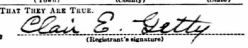 Clair Edwin Getty was born on 17 January 1889 in Grand Rapids, Kent, Michigan to Herman Vedder Getty (1869-1922) & Minerva M. "Mae" Christie (1868-1945). Clair had four brothers, Verne Howard (1887-1956), Glen (1890-1957), Louis Eral (1892-1961) & Arthur Ward (1900-1962) and two sisters, Iva L (1894-1968) & Dora Betty (1898-1996).