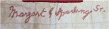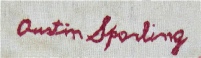 Austin Sparling was born on 5 November 1912 in Saskatoon to Frederick George Sparling (1864-1922) and Ruth Eloise Phillipi (1878-1962). His siblings were Philip (1905-2002) and Margaret (1907-1992). By 1911 his family was living at 215 Saskatchewan Crescent in Saskatoon. From 1913 to 1919, his father was a physician and farmer and the family lived at 315 Saskatchewan Crescent. By the time of the 1921 census they had moved to Red Deer, Alberta. In 1930 Austin was living in St Paul, Minnesota with his mother and by 1940 he was married to Lorraine L Lovatt (1912-2004) and was living in Chicago, Illinois. He died on 26 September 2002 in Cedar Rapids, Iowa. Although Austin was only 6 years old at the time that the quilt was being signed, he was the only Austin Sparling that we could find with any link to Saskatoon. His grandmother, Margaret Sparling and two of her children definitely signed the quilt. If Austin did not sign it himself, it is speculated that a relative likely signed his name for him.