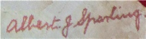 Albert James Sparling was born on 28 August 1859 in Blanshard, Ontario to James Wyndham Sparling (1838-1901) and Margaret Gilpin (1831-1920). His siblings were: Mary Eleanor (Nellie) (1861-1895), John Henry (1862-1922), Frederick George (1864-1922), Harriet Eliza (Hattie) (1866-1921), Margaret Josephine (Maggie) (1868-1940), Martha Louise (Mattie) (b 1870), William Joseph Walter (1872-1957) and Millie Alice Holmes (1874-1948). From 1861 to 1881, the Sparling family was living in Blanshard, Perth County, Ontario.