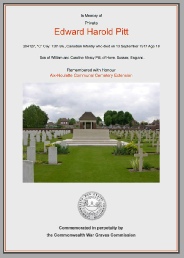 ld Pitt, was born on 18 September 1897 in Hove. He enlisted for the War on 16 Jan 1916 and died in action on 13 September 1917. He was buried in Aix-Noulette, Departement du Pas-de-Calais, Nord-Pas-de-Calais, France.