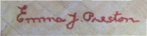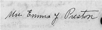 Emma Jane Preston was born on 24 December 1871 in Peterborough, Ontario to George Preston (1843-1924) and Margaret Rosborough (1845-1924). Her siblings were: Mary (b 1873), Ann (b 1875), George Ernest (1877-1931), Alice (b 1879), William James (b 1881), Ethel (b 1885) and Laura Beatrice (1887-1973). The Preston family was in Smith, Peterborough, Ontario in 1881. Emma married Richard Freeman Preston on 8 April 1891 in Birtle, Manitoba. Richard was born on 30 October 1869 in Ontario to Alexander Preston (1833-1909) and Elizabeth Freeborn (1830-1901). His siblings were: Barbara Jane (1856-1866), Joseph Chapman (1858-1903), William James (1858-1870), John Alexander (1860-1897), Margaret (1863-1863), Francis James (1865-1929) and William Thomas (1871-1951). His family was living in Manitoba in 1881. Emma and Richard and family lived in Miniota, Manitoba in 1891 and in Birtle, Manitoba in 1901.
