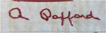 No A Paffard could be found associated with Saskatoon. It is a long shot that Agnes Paffard in this tree was the signer, but it was thought that perhaps her interest in the Toronto Nurses Club or possibly other nursing organizations may have brought her to Saskatoon during 1918 for a meeting and that she may have signed the quilt at that time. There were other Paffards in this tree with the initial A, but there is no reason to think that they had any reason to travel to Saskatoon.