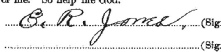 E R Jones signature on
