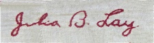 In 1911 Julia was a teacher, boarding with the Seguin family in Beauharnois, Quebec. She married Everett Alfred Lay there on 27 September 1911. Everett was born on 6 January 1886 in Montmorency Falls, Quebec to Alfred Francis Lay (1832-1894) and Belle Doddridge (1857-1889). His siblings were: Warren Elwin (1879-1884) and Ethel (1881-1881). In 1901 the Lay family was living in Danville.