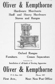 y 1901, Samuel had come west to Indian Head, Assiniboia, Saskatchewan where he was a clerk in a hardware store. In 1908, Samuel was in Saskatoon in partnership with Fred Oliver as Hardware Merchants. They took a full page advertisement in the Henderson City Directory for 1908. Two years later, Samuel was proprietor of his own business, Shelf & Heavy Hardware. The business address was 157-159 2nd Ave - soon to become Kempthorne Block.
