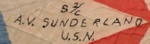 Arthur Vernon Sunderland was born 17 July 1924 in Kansas, possibly Severy, Greenwood. He enlisted in the US Navy on 26 November 1942, aged 18. After training he was appointed as a Machinist’s Mate to the USS Blue Ridge, an Appalachian Class Amphibious Force Command Ship.