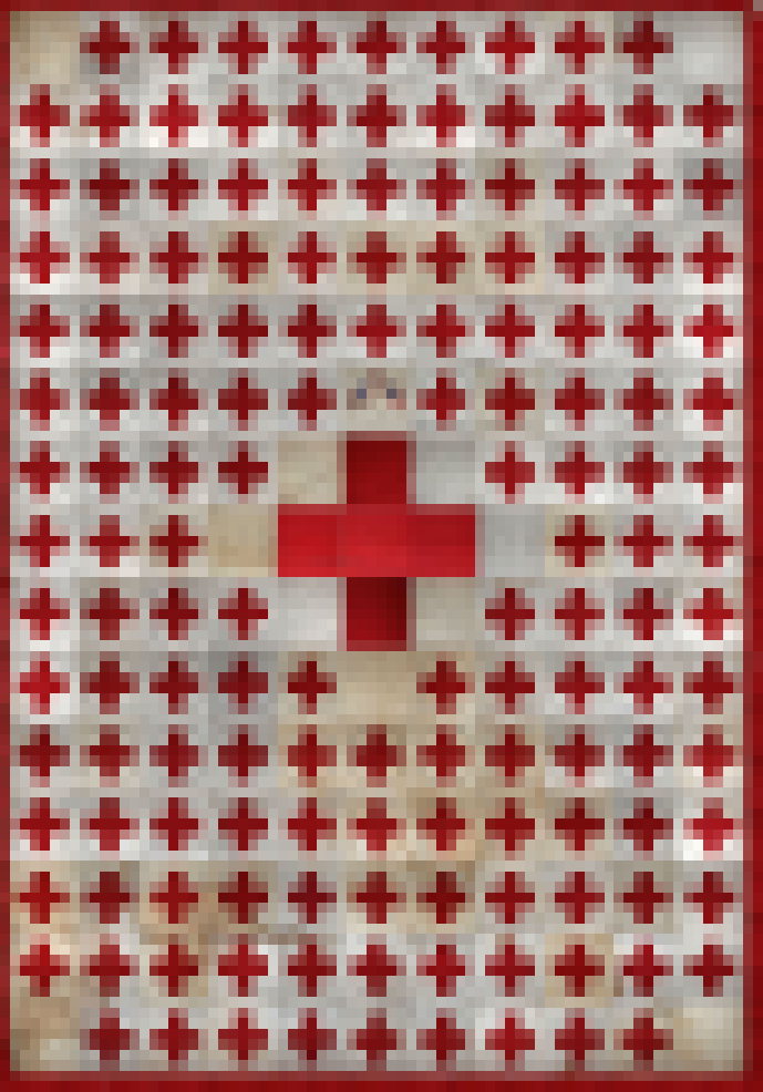The Red Cross emblem is a protective symbol used during armed conflicts and its use is protected by international law. We wish to thank the United Kingdom Ministry of Defence and the British Red Cross Society for authorisation to include on the website the images of this quilt bearing the emblem and the words "Red Cross".