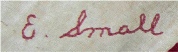 As there were two Georges in this family, it is unknown which one of them signed the quilt. E Small signed immediately under Geo Small on the quilt, strongly suggesting that they were related. The only person in this family that appeared to use the letter E for a first name was Joseph Elmer. His name was recorded as Elmer in one of the census records. Although it appeared that he never lived in Saskatoon, he may have been here on a visit when the quilt was being made. Another less likely candidate for the E signature was Barbara Elizabeth. However, there was not one instance when the name Elizabeth alone was ever used in the census records that included her and so it seems unlikely that she was a signer.