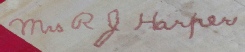 Lizzie grew up in Kincardine/Kinloss, Bruce County, Ontario where her father was a cabinet maker and general woodworker. She married Robert James Harper on 2 September 1902 in Holyrood, Ontario. Robert was born on 25 July 1876 in Holyrood to John Harper (1828-1899) and Mary Ann Smith (b 1839). Robert had nine siblings, W John (b 1857), Sara (b 1859), Mary Jane (b 1862), Thomas (b 1864), Elizabeth Ann (b 1866), Emily Melissa (b 1868), Margaret Ellen (b 1870), Angeline Ann (1872-1962), George Alexander (1875-1949). John was a farmer at the time of his marriage.
