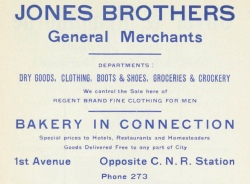 Horace and Wilfred established their general merchandise business very soon after they arrived in Saskatoon in 1905. By 1908, Jones Brothers was a large store at 248 1st Ave and they had an advertisement in the Henderson Directory for that year. The business prospered and by 1914 they were employing about twenty staff. It seems that Wilfred was less settled than Horace. In 1915, Wilfred was lodging at 132 Broadway, New York and was a real estate broker.
